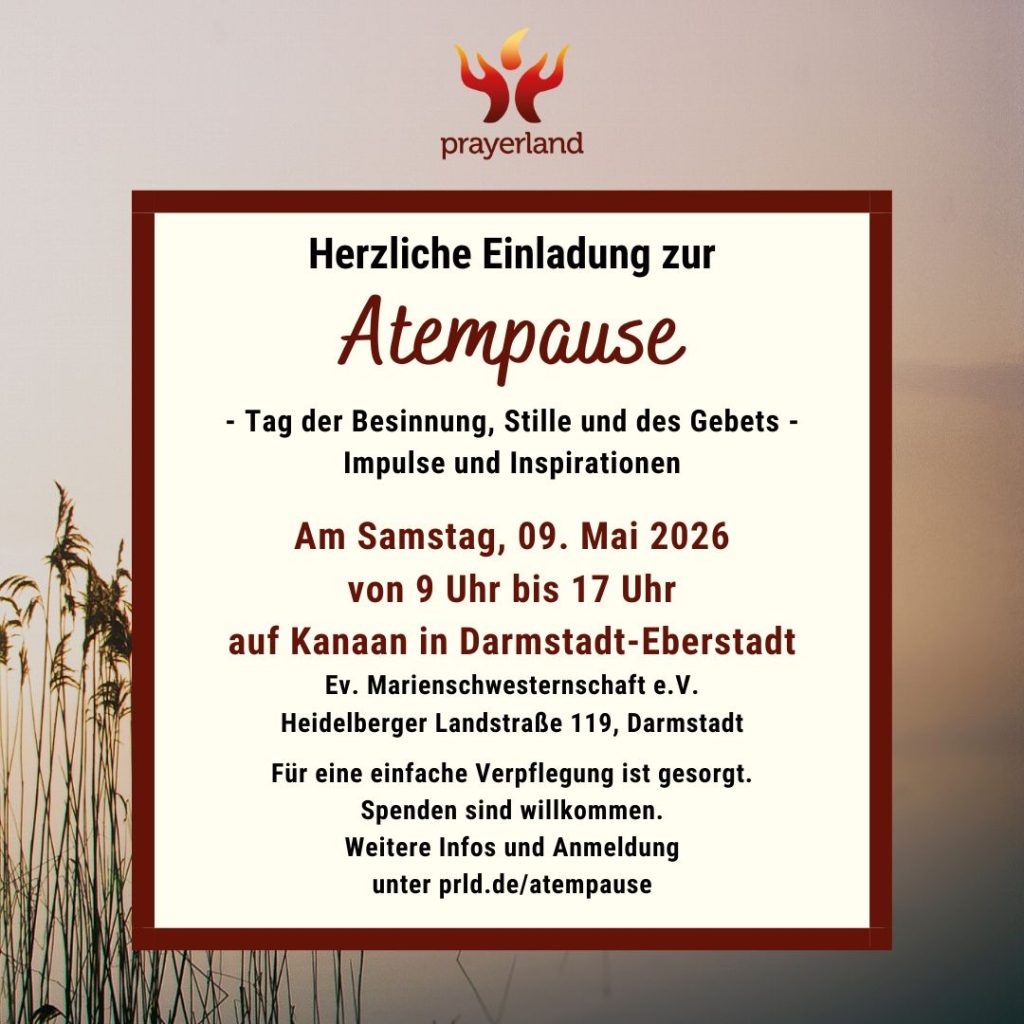 Herzliche Einladung zur nächsten Atempause auf Kanaan, dem Gelände der Evangelischen Marienschwesternschaft in Darmstadt-Eberstadt.